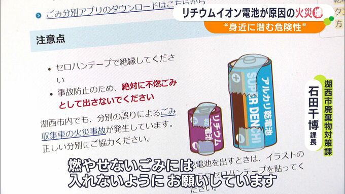 「リチウムイオン電池や乾電池につきましては、湖西市としては分別して他の日に出していただくということで、燃やせないごみには入れないようにお願いしている」