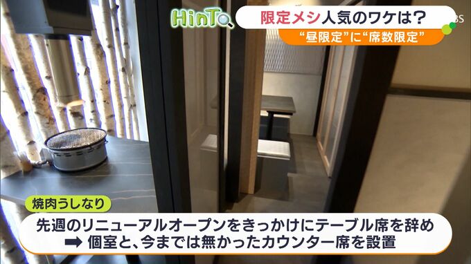 テーブル席や個室がメインの焼き肉店。リニューアルオープンをきっかけにテーブル席をやめ、個室と、いままではなかったカウンター席を設けました。