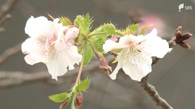 開花が確認されたのは、島田市役所の敷地内に植えられている品種不明のサクラです。