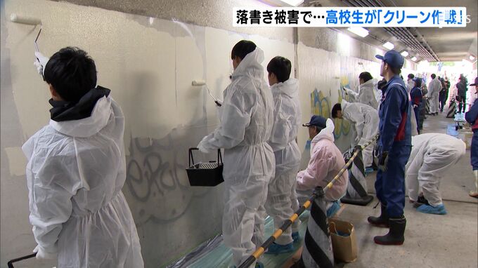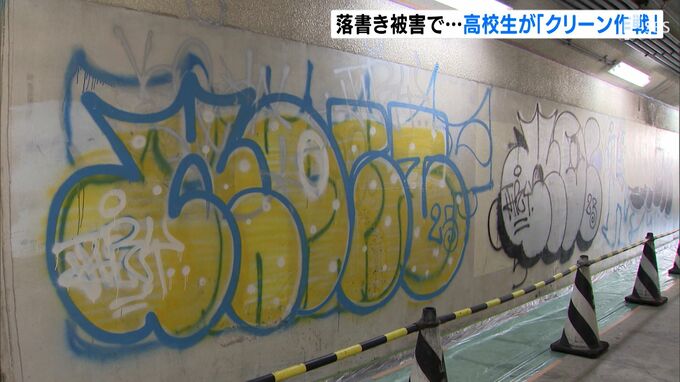 11月18日、静岡県沼津市で高校生たちが地下道に書かれた落書きを消す「クリーン作戦」が行われました。