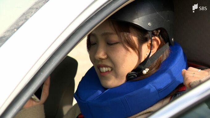 助手席に座るのは杉本真子キャスター。