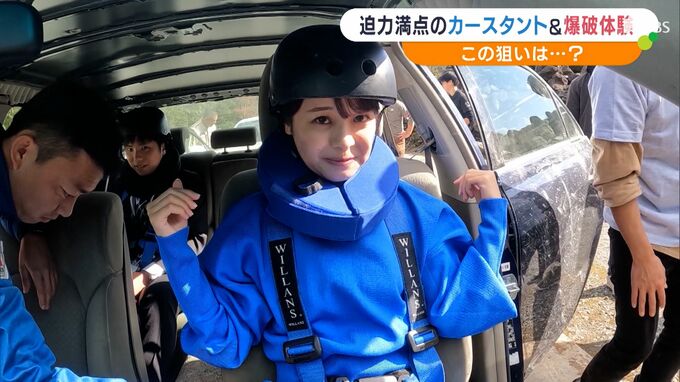 見ごたえ抜群のカースタントに、大迫力の爆破体験。富士山のふもと・裾野市の「オールラウンドV裾野」で開かれたモニターツアーには、静岡県の内外から特撮ファンや旅行事業者など30人が参加しました。