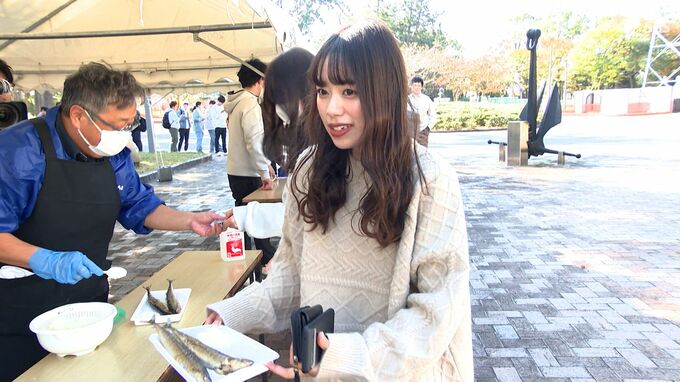 静岡市清水区の東海大学のキャンパスでは11月24日、水揚げ日本一を誇る北海道根室産のサンマを味わえるイベントが開かれました。
