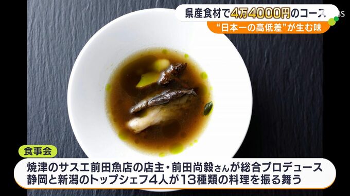 日本一高い富士山と日本一深い駿河湾の両方を持つ静岡県。“日本一の高低差”が育んだ食材を楽しむ1日限定の食事会が行われました。参加費は1人4万4000円。一体、どんな料理が並んだのでしょうか。