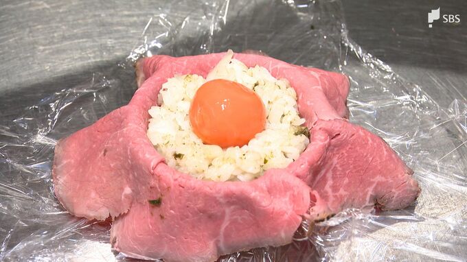 「こちらの和牛のローストビーフで作った、肉むすの牛です」