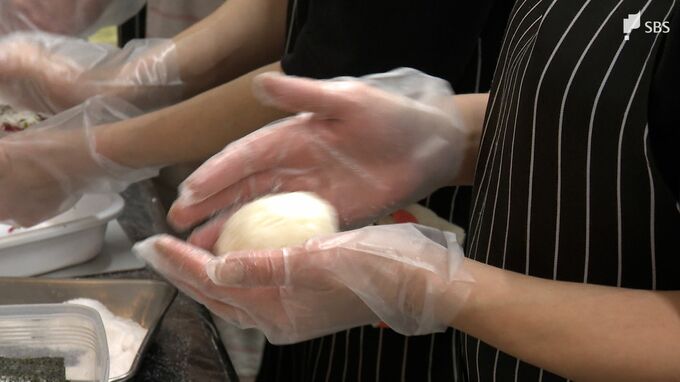 「きょうは、しらすねぎと豚キムチと納豆大葉です。子育て中は温かくてホカホカのおにぎりをなかなか食べられない。ここだと食べられるので、よく利用している」