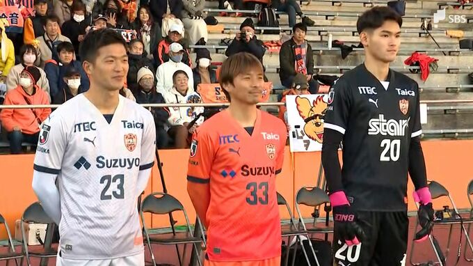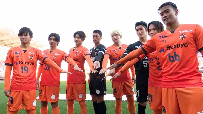 5日に発表されたエスパルスの新体制。エスパルスファンを公言する阪神タイガースの岩崎優投手に今シーズンのユニフォームを渡すイベントなどが行われました。