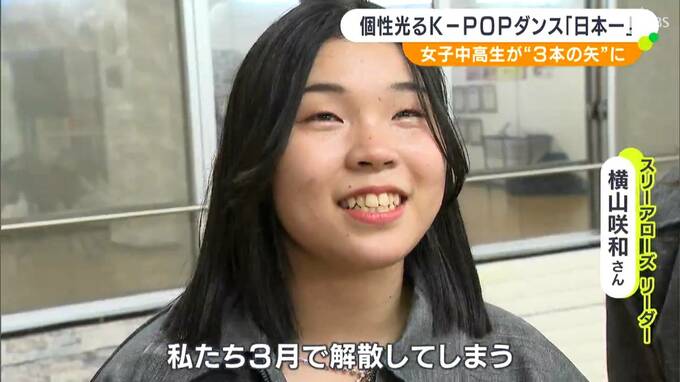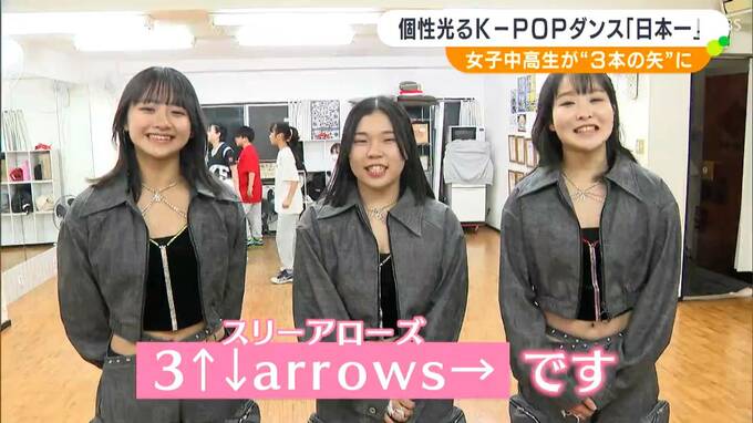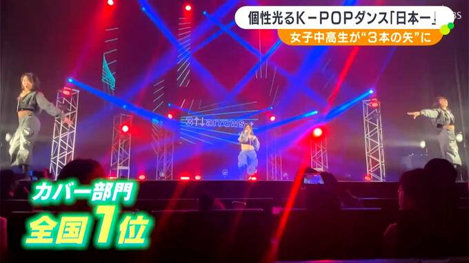 「3↑↓arrows→」(スリーアローズ)の3人は1月5日、初めて開催されたK‐POPダンスの全国大会に出場。257組1249人がエントリーした国内最大規模の大会で決勝に進出し、オリジナルの振り付けをミックスした『カバー部門』で最優秀賞=全国1位となりました。