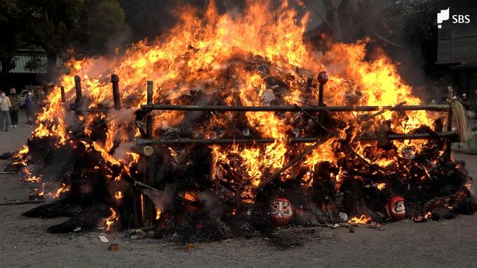 静岡県の三嶋大社で1月15日朝、正月飾りやだるまなどを燃やして1年の無病息災を願うどんどん焼きが行われました。