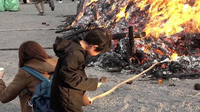 訪れた人はどんどん焼きの火で暖をとりながら、持ち寄った餅や団子などを焼いて1年の無事を願っていました。