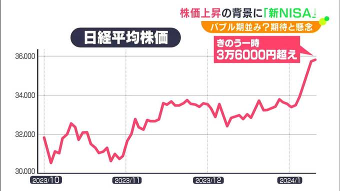 株価の上昇トレンドが続いています。1月15日、日経平均株価は一時、バブル期ぶりの高値に。後押しをしているとみられるのが1月から始まった「新NISA」の存在です。改めて投資の人気が加速しています。