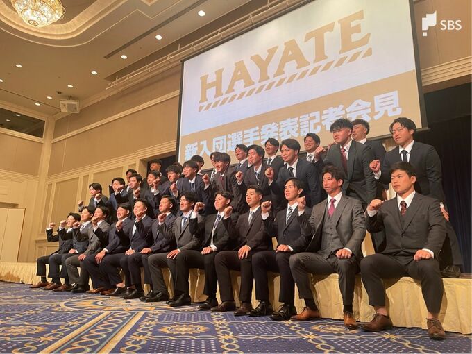 2024シーズンからプロ野球2軍に参加する「くふうハヤテベンチャーズ静岡」は1月24日、静岡市内のホテルで新入団会見を開き、新たなユニホームとチームロゴを発表しました。