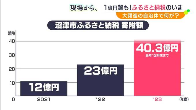 沼津市は2023年度、ふるさと納税が絶好調。2023年度の寄付額が前半の半年で、すでに前の年度を上回り、市長が掲げた年度の目標40億円を3か月を残し達成しました。