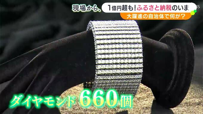 「ダイヤモンドのブレスレットになります。寄付額が…1億1800万円」