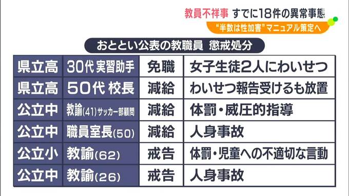 静岡県内では教職員による不祥事が止まらず、2023年度の懲戒処分件数は18件。2か月を残してすでに2022年度の14件を上回っています。そのうち、8件は性暴力の事案でした。