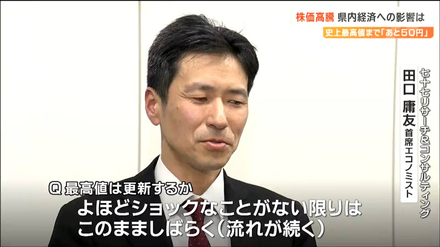 16日の日経平均株価は一時、3万8800円台となり、史上最高値に50円まで迫りました。およそ34年ぶりとなる最高値更新が目前となった株価。宮城県内の経済にはどんな影響があるのでしょうか。
