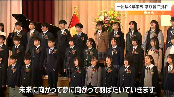 宮城県登米市の小学校で14日、ひと足早く卒業式が行われ、6年生が思い出多い学び舎を巣立ちました。