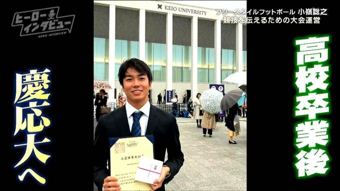 高校卒業後は、慶応大学に進学。学校の勉強と、フリースタイラーとしての練習に加え、フリースタイルフットボールの世界連盟メンバーとして、大会運営も手がけることに…。