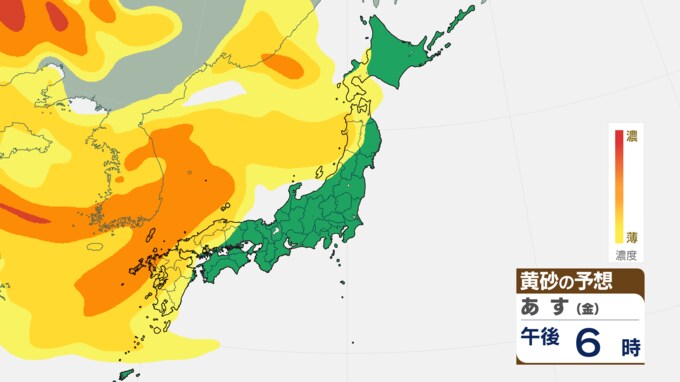 また、所によっては視程が5キロメートル未満となる見込みで、交通障害が発生するおそれもあります。コンピューターでのシミュレーションでは、特に西日本を中心に濃度の高いエリアが予想されています。