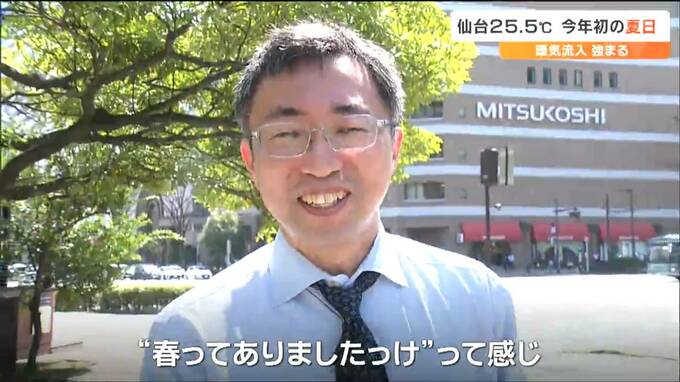 15日の仙台市内は暖かさを通り越して暑いくらいとなりました。宮城県内は暖かい空気の流れ込みが強まり、仙台の最高気温は25.5度と、今年初めての夏日となりました。