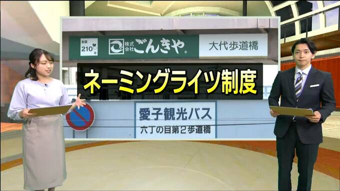 県や市では歳入確保を図るため、歩道橋に「ネーミングライツ制度」を導入していて、企業名を表示できる権利を年間30万円から購入できます。契約金の収入は歩道橋を含む道路の改修費などに充てられます。
