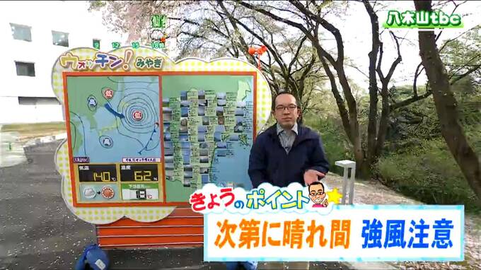 「黄砂飛来おさまったが北西の風が強まる。概ね曇りや晴れ山沿いでは昼過ぎにパラッと通り雨も」宮城の30秒天気 tbc気象台 19日 2024年4月19日(金) 10:08 国内 天気 「県内への黄砂の飛来はおさまりましたが、かわって北西の風が強まってきます。天気は概ね曇りや晴れですが、山沿いでは昼過ぎにパラッと通り雨も。ここ数日に比べると気温は低めに」