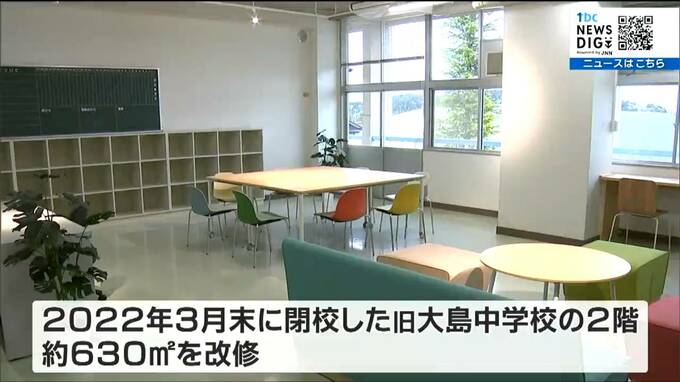 「大島アスナロウ荘」は新たな産業や雇用の創出などを目指し、首都圏の企業向けのサテライトオフィスとして市が整備しました。2022年3月末に閉校した旧大島中学校の2階およそ630平方メートルを改修したオフィスには、事業者が活用できる6部屋が用意されたほか、16席あるブース貸しのシェアオフィスなども設けられていて、すでにアニメ制作関連など東京の企業2社の入居が決まっています。