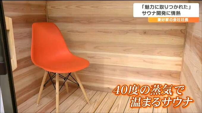 実用化を目指し、5月、仙台で開かれた展示会にも出展しました。一般的なサウナよりも温度が低い40度の蒸気で温まる仕組みです。ナノレベルの蒸気の粒が繊維を通り抜けるため服を着たまま入ることができます。