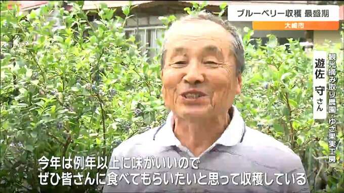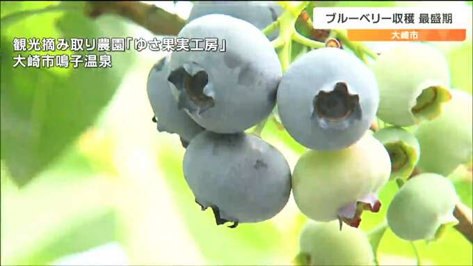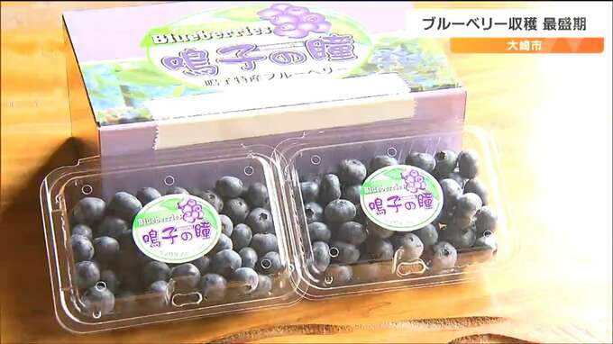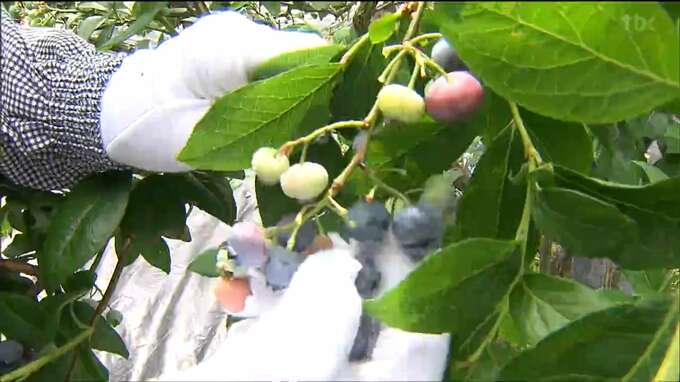 ブルーベリーの収穫が宮城県大崎市で最盛期を迎え、生産者が毎日朝早くから摘み取り作業に追われています。