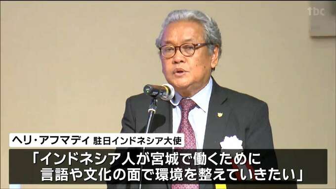 そして、インドネシアのヘリ・アフマディ駐日大使が「インドネシア人が宮城で働くために言語や文化の面で環境を整えていきたい」と話しました。