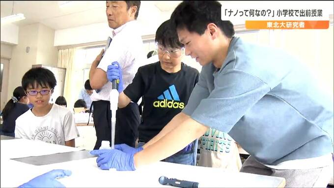 10億分の1メートル、「ナノ」サイズの超微粒子をつくって子どもたちに科学の楽しさ、面白さを実感してもらおうと、宮城県大和町の小学校で東北大学の教授らによる出前授業が開かれました。