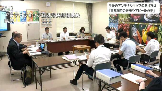このアンテナショップの今後のあり方について、県庁で12日、有識者らに意見を求める懇話会が開かれました。会では、「首都圏で県産品を販売することは観光客の呼び込みにもつながる」といった意見が出されました。