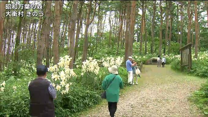 ヤマユリが見ごろになっているのは、大衡村にある森林公園、昭和万葉の森です。