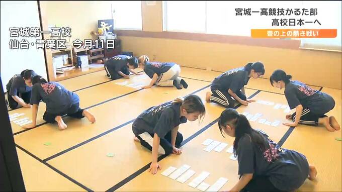 真剣な眼差しで畳の上の札を見つめる生徒たち。今月11日、仙台市の宮城第一高校では、競技かるた部のメンバーが全国大会に向け練習に励んでいました。30人を超える部員から選ばれた8人が19日から滋賀県大津市ではじまる全国高校選手権大会の団体戦に出場します。毎年夏に開かれるこの大会は「競技かるたの甲子園」と呼ばれています。
