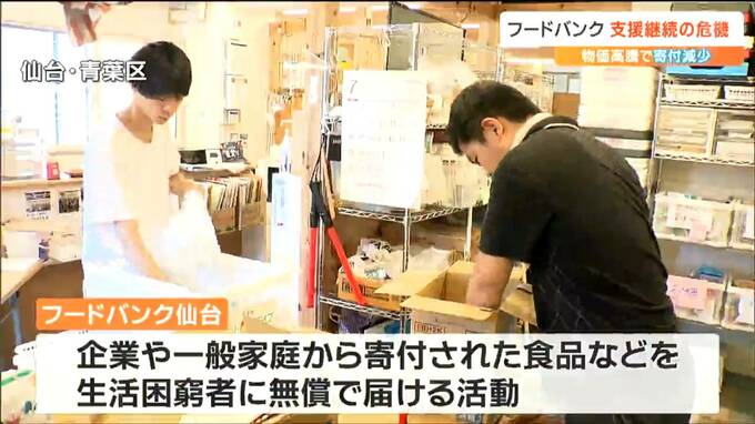 青葉区にあるフードバンク仙台では企業や一般家庭から寄付された食品などを生活困窮者に無償で届ける活動をしています。しかし、寄付される食料は最近、大きく減っているといいます。