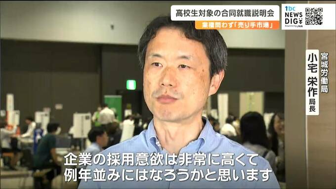 宮城労働局によりますと、昨年度末に卒業した県内に就職希望の高校生およそ2200人に対し、県内の求人数は1万件以上にのぼり、県内での求人倍率は4.95倍となっています。こうした売り手市場の傾向は今年度も続くとみられています。
