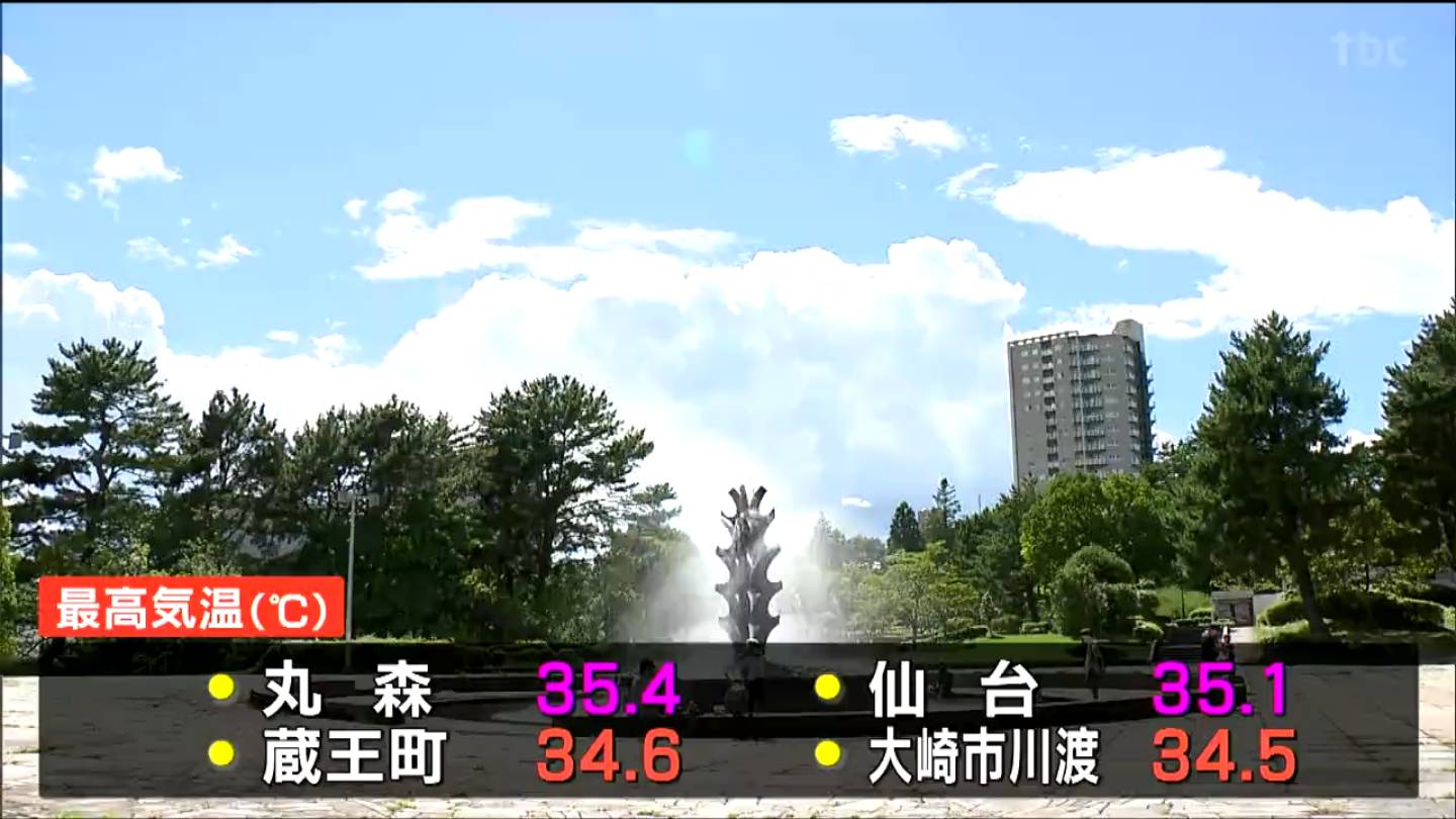 最高気温は、丸森で35.4度、仙台で35.1度と、2か所で猛暑日となりました。仙台で猛暑日となったのは7月23日以来25日ぶりで、今年3日目となります。