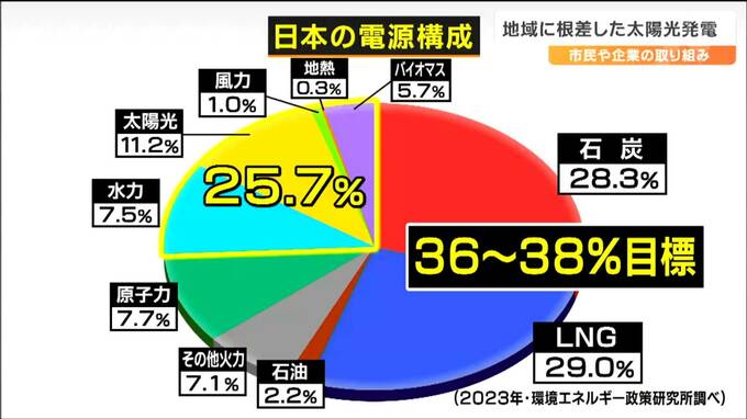 現在、日本の電力量に占める再エネの割合は25.7%。政府は2030年までに、この割合を36~38%とする目標を掲げています。