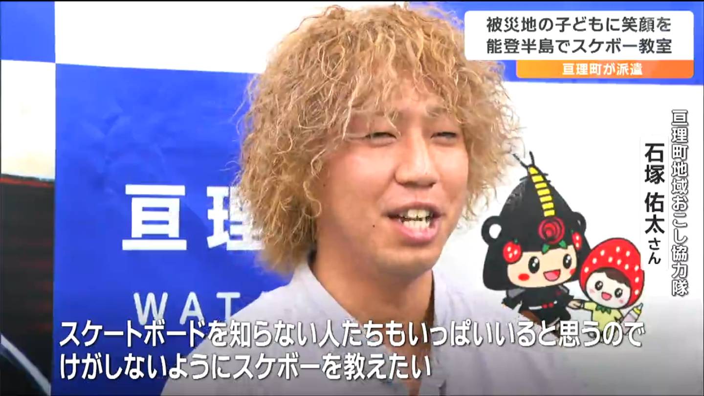 能登町でのスケボー教室は31日開催される予定で、3人は30日、現地に向けて出発するということです。