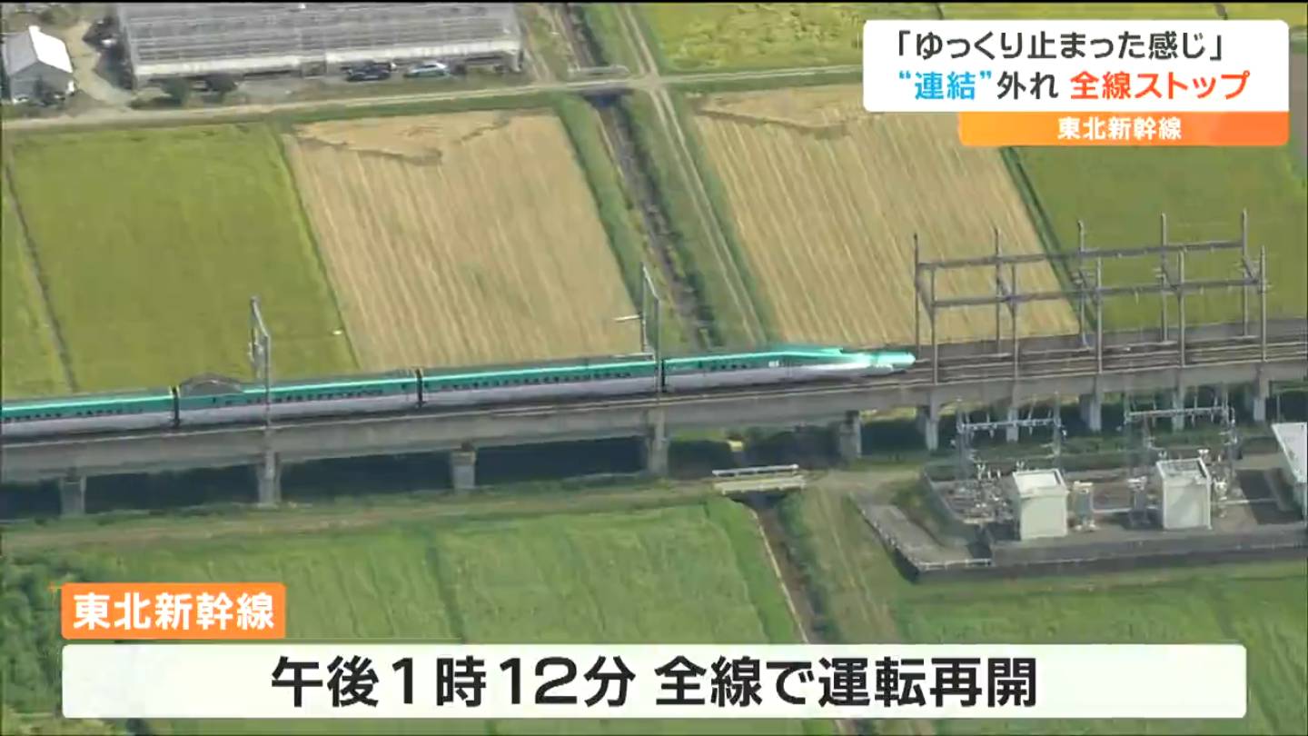 東北新幹線は、午後1時12分に全線で運転を再開しました。トラブルが起きたはやぶさ・こまち6号には乗客320人がいましたが、けがをした人や体調不良を訴える人はいなかったということです。