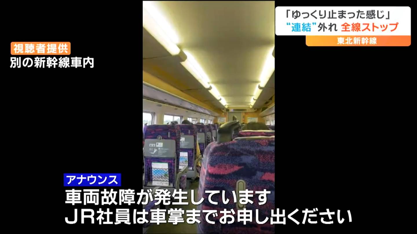 19日朝、走行中の東北新幹線で車両の連結が外れるトラブルがあり、一時全線で運転がストップしました。