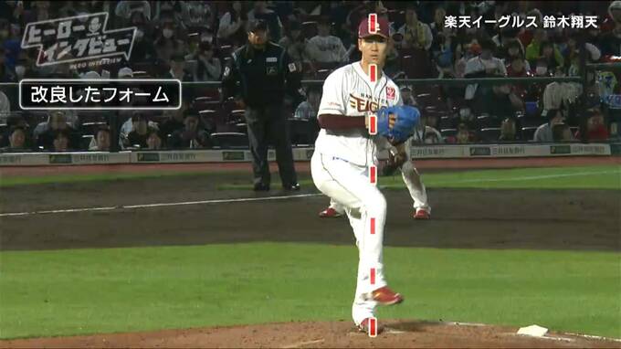 開幕時は真っすぐ立ち、右足を上げた一連の流れで投げていました。そこから青山コーチのアドバイスを受けフォームを改良。軸足に少し体を傾け、体重を残すことで、タメが生まれました。このフォーム改良こそが、今シーズンのキーポイントとなったのです。