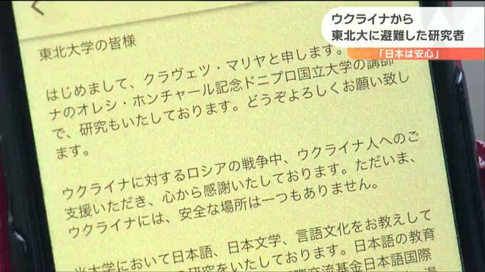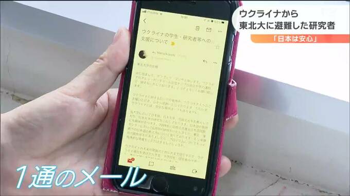 クラヴェツさんが仙台に来るきっかけとなったのは、今年5月、東北大学に送った1通のメール。現地の窮状を訴えた内容で、東北大学は、ウクライナ支援の一環で研究を続けることが困難となったクラヴェツさんを迎え入れたのです。