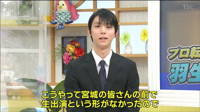 仙台市出身でプロスケーターへの転向を表明した羽生結弦さんが10日、tbcのテレビ番組に生出演し今後の活動などについて語りました。
