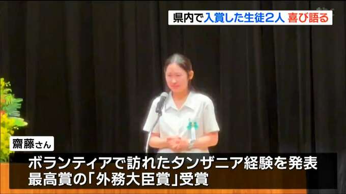 このうち仙台二華高校2年の齋藤汐音さんは、2024年8月、仙台で開かれた高校生の英語弁論の全国大会で高校1年のときにボランティアで訪れたタンザニアでの経験を発表し、最高賞にあたる「外務大臣賞」を受賞しました。