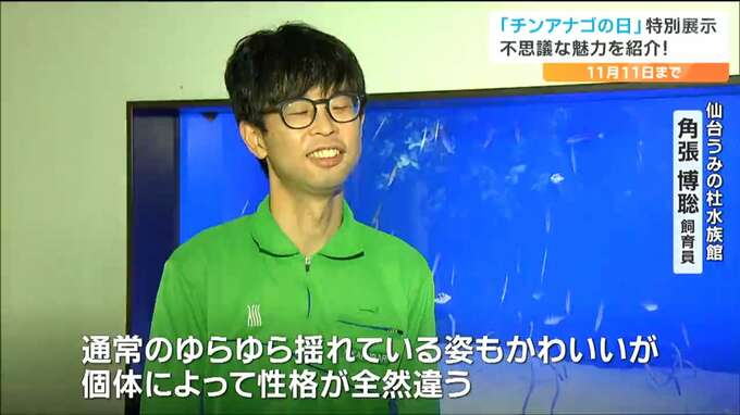 特別展示は「チンアナゴの日」当日の11月11日までで、11日のみ午前11時11分からチンアナゴの水槽の裏側を見ることができるバックヤードツアーが開催されます。
