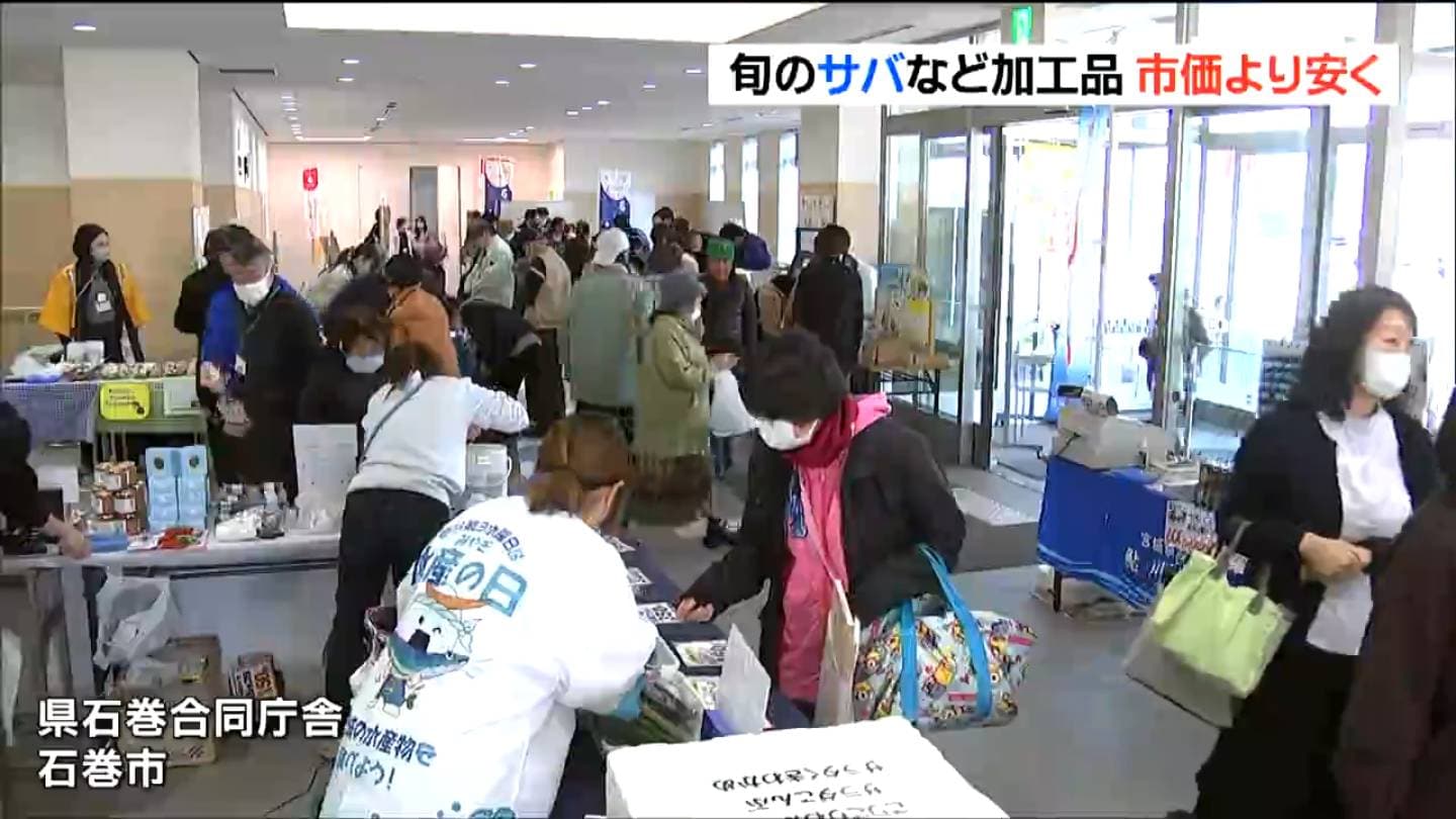 毎月第3水曜日は「みやぎ水産の日」です。宮城県石巻市では、旬を迎えたサバなどの加工品を販売する催しが開かれ、多くの人でにぎわっています。
