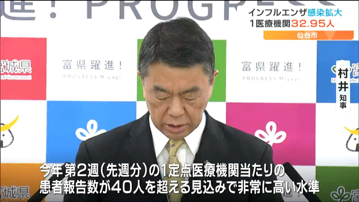 また、宮城県の村井嘉浩知事も、15日の定例会見でインフルエンザの感染者数が増加しているとして感染拡大に警鐘を鳴らしました。
