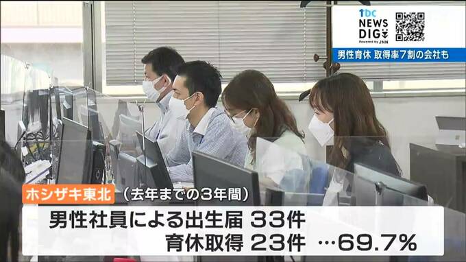 去年までの3年間で「子どもが生まれた」という男性社員の届け出は33件。このうち育休を取得したのは▼23件と、取得率は▼69.7%。政府の目標を大きく上回っています。
