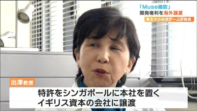 2010年にMuse細胞を発見した東北大学の出澤真理教授。先月、治療薬の開発する権利=特許をシンガポールにあるイギリス資本の会社に譲渡しました。